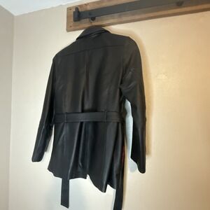Croft & Barrow Jacket Women's Size Medium Black Leather Belted Trench Coat Rider
