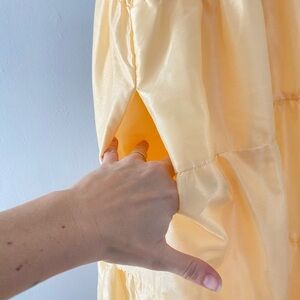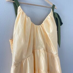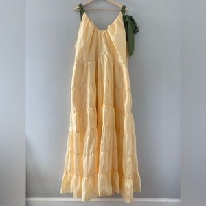 Anthropologie Hutch Scoop Neck Tiered Yellow Maxi Dress Green Bow Women's 3X