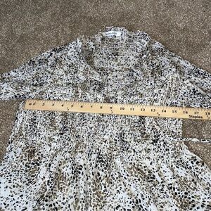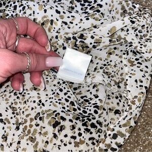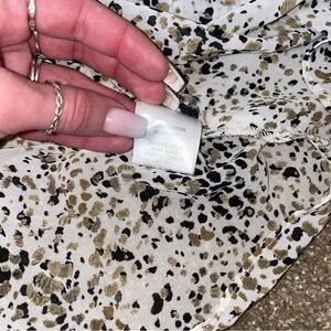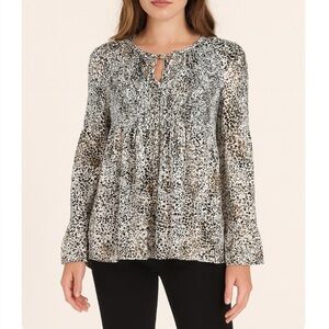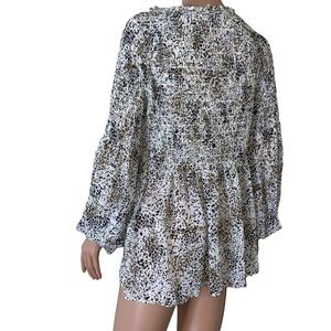 Rose + Olive blouse flowy bell sleeve cheetah animal print key hole neckline XL