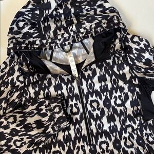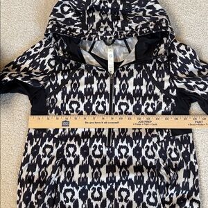 Rare Lululemon Black White Purple Logo 1/2 Zip Hoodie Jacket Lightweight Windbreaker Running Kangaroo Pocket Back Zip Pocket Adjustable Hood Womens Size 8
