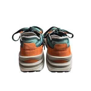 Colorway The shoes feature a mix of Pro Green transparent mesh upper with Rust Oxide suede overlays and a Rush Orange base visible under the mesh and on the heel tab.