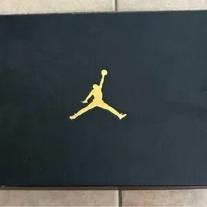 Sleek black box featuring a gold Jumpman logo. Perfect for collectors.