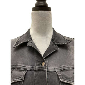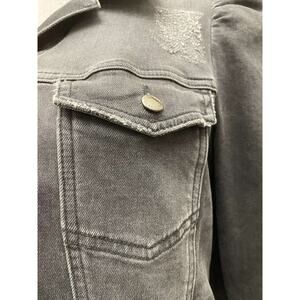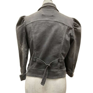 Retrofete Ada Black Denim Jacket Medium Puff Sleeve Distressed Acid Wash Crop