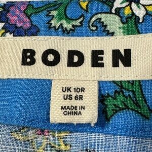 Boden Eve Linen Midi Dress Boho Preppy Blue Botanical Bunch Size 6R