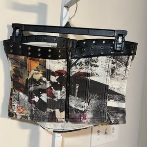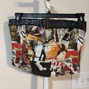 Vibrant graphic print mini skirt by Jaded London. Accented with a bold black belt. Ideal for making a statement.