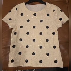J. Crew Sequin Cream Sweater with Black Polka Dots Sz M
