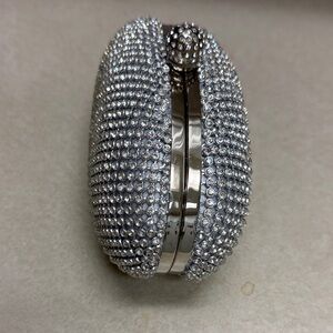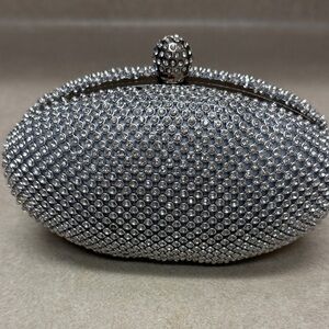 This elegant silver clutch is perfect for evening events. Its sparkling design adds a touch of glamour to any outfit. Good condition. Only used a few times.