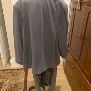 Stylish 100% silk gray blazer. Perfect for formal occasions. The silk is very soft, with a suede like texture. The jacket has a single button closer with side pockets. Size 22W. Only worn once or twice.