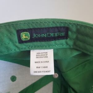 John Deere Green Yellow Baseball Hat Cap. Nothing Runs Like A Deere. Farming, tractor, deer. Curved brim, John Deere logo on front panel, button top, 6 panels, antique bronze metal clip adjustable closure, 100% cotton, one size fits most. No rips or stains. Like new condition!