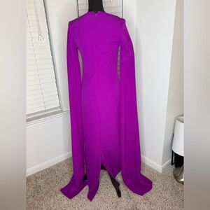 Make a statement with this chic long sleeve magenta gown. Ideal for formal events, it combines elegance with modern style.