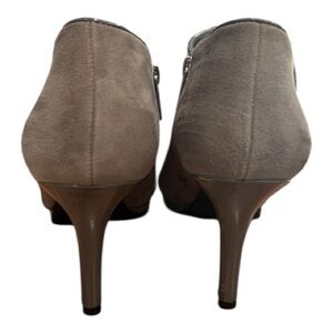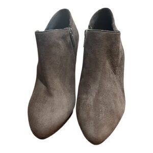 Bandolino Batyard Gray Suede Leather Heeled Booties 11M Side Zip Chic Fall Look