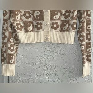 American Eagle Outfitters Yin & Yang w/ Flowers Cropped Cardigan