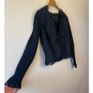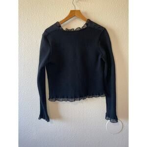 Bagatelle Faux Suede Ruffle Single Clasp Long Sleeve Y2K Style Cardigan Small
