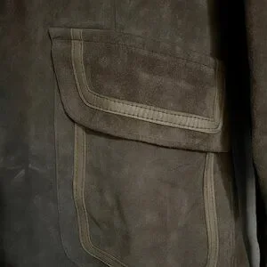 Vintage Long Brown Leather & Suede Coat w/ Lamb Fur Trim – Suede Belt
