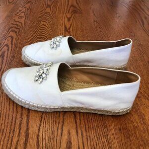 MIU MIU Espadrille Embellished Flats Shoes Womens 38 8 White Canvas Crystals