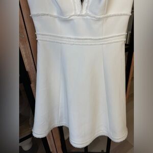Cinq a Sept mini dress Aurora Fringe V Neck A Line bride bridal scuba flare
