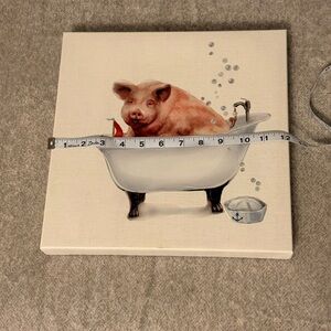 Delightful canvas art featuring a whimsical pig enjoying a bath. Adds a playful touch to your bathroom decor with its charming design.