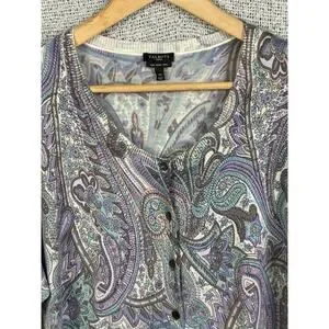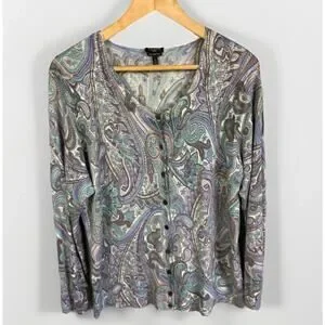 Talbots 100% Merino Wool Cardigan Sweater Women’s 2X Paisley Quiet Luxury Pretty