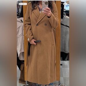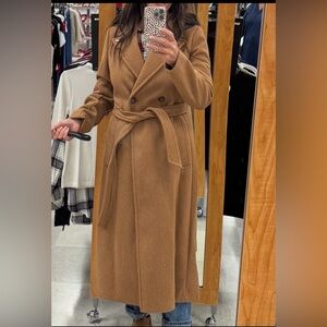 Stylish brown trench coat with a double-breasted design. Features a classic silhouette and elegant lapels.
