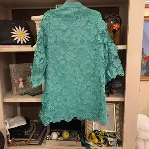 J.Marie Seraphina Dress XS mint green Short Floral 3D Lace caftan XSmall