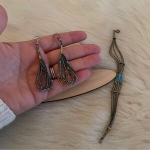 Vintage Beaded Earring Bracelet Set Sterling Silver & Turquoise Native American