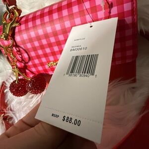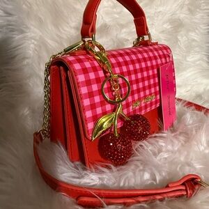 RETAIL VALUE : $113 This cute Betsy Johnson Pink and Red Plaid Cross Body Bag comes with multiple bag charms. A cute Valentine’s day bag ❤️ COMES WITH BAG AND ALL CHARMS!