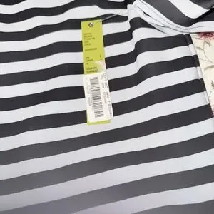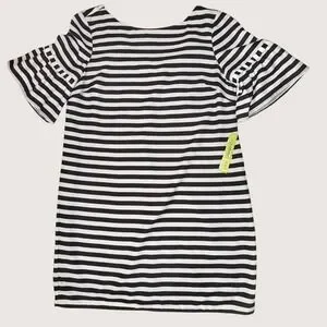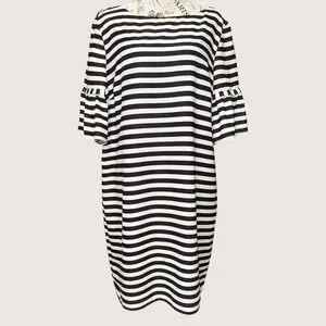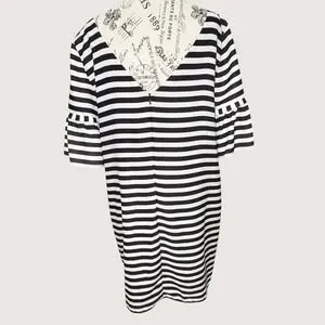 NWT Gianni Bini Black Ivory Striped Dress Bell Sleeve Lined Shift Women's L