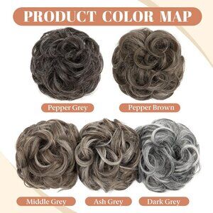 2PCS Messy Bun Hair Pieces Synthetic Wavy Curly Updo for Women Ash Grey