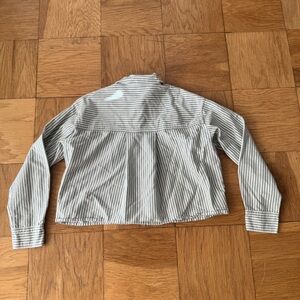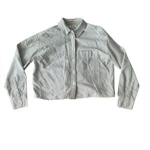 Madewell Signature Oxford Crop Shirt Oversized Spruce Green White Striped XS