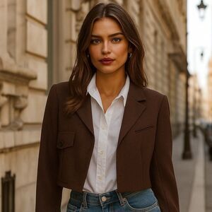 Style: Cropped, tailored, single-breasted