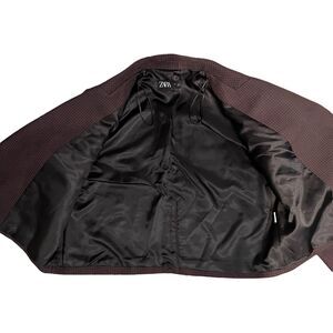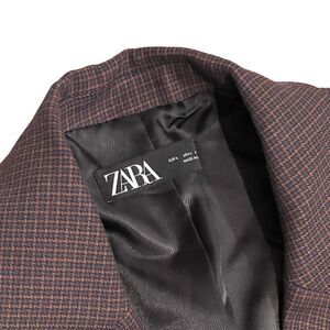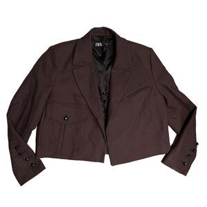Zara Houndstooth Cropped Blazer L Brown Check Tailored Jacket Business