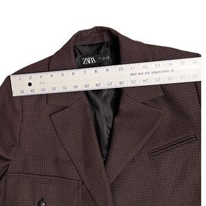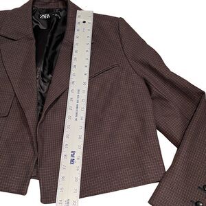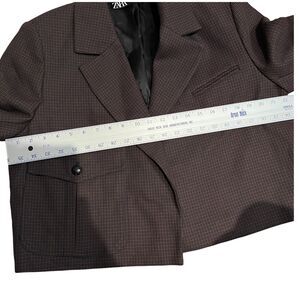 ZARA Blazer L Checked Cropped Jacket Brown Plaid Business Casual Coin Pocket