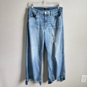 7 For All Mankind the Jo Jeans Women's 31 Wide Leg Destroyed Step Hem Stretch