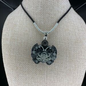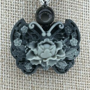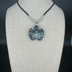 Tai Chi Stone Butterfly Pendant Necklace Silver Accent on Rope
