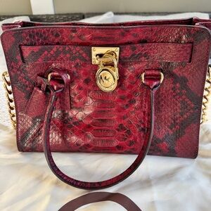 Michael Kors Burgundy Snake Print Satchel