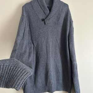 Gap Sweater Mens XXL plus sz Navy Heather Collar Solid Rib Shaw Cotton Pullover