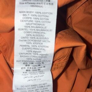 Chic long sleeve dress by Tory Burch. Features a vibrant orange hue and button-up front. Includes a stylish tie waist.