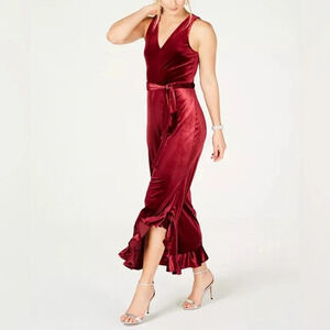Betsy Johnson Burgundy Velvet Flare-Leg Jumpsuit Size 14 NWT
