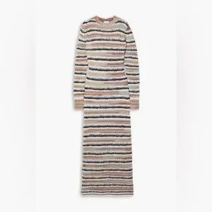 Stylish long sleeve dress with multicolor stripes. Perfect for versatile wear. Comfortable and elegant. Size small, gently used. Crochet style dress, no lining. Retails $595 new