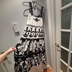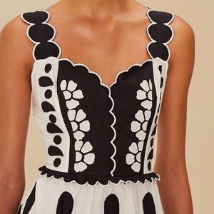 Farm Rio Black and White Summer Shell Fish Cutwork Cotton Midi Dress Medium