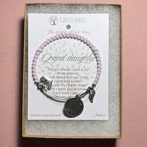 Silver and Pink Beaded Granddaughter Bracelet by Earth Angel, Silver Hardware
