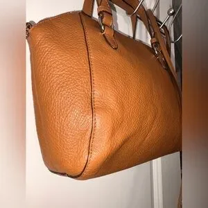 Coach Pebbled Leather Structured Satchel Crossbody Brown