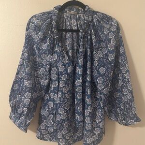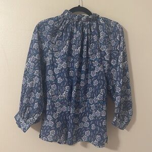 Fitzroy & Willa Cotton Long Sleeve Blue Floral Top Bow Small Cottagecore Preppy