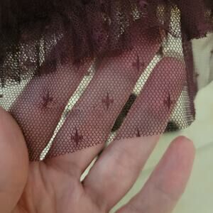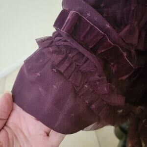 New With Tags Mac Duggal 8054 gown in a rich amethyst tone, designed with an intricate micro-ruffle mesh overlay that creates soft texture, floaty movement, and a romantic tiered silhouette. This statement midi gown features a scoop neckline, delicate ruffle cap sleeves, and a velvet ribbon waistband that adds gentle definition while enhancing the feminine shape. Allover ruffled frill detailing gives the dress a dimensional, layered look that photographs beautifully and offers a modern romantic feel ideal for weddings, cocktail events, garden parties, prom, and special occasions. Small flaws at the hemline — see photos — not noticeable when worn.