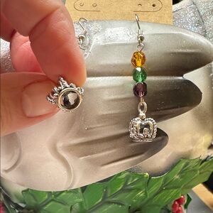 Mardi Gras Silver Crown Drop Earrings with Multicolor Beads 2/$22