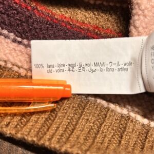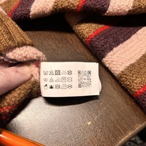 Though the tag says 9-10 years, this sweater has shrunk, likely from someone washing it. It fits about a 2-3T. Measurements below. Otherwise in great condition. Heavyweight and soft. Colors are brown, pink, purple, red.