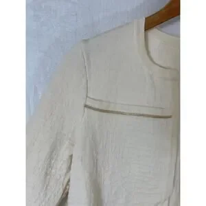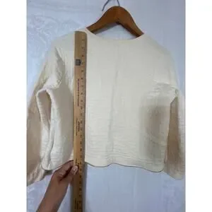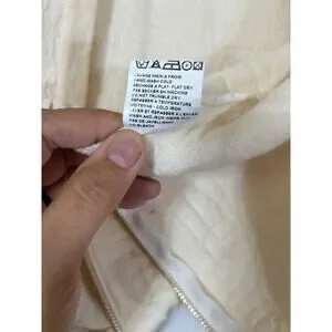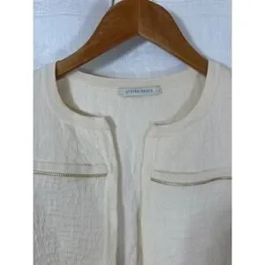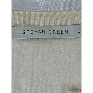 Stefan Green 2 Cardigan Sweater Merino Wool Blend Cream Gold Zip Trim Boxy