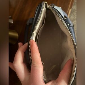 Chic Kate Spade satchel in light blue. Features elegant handles and a sleek design.