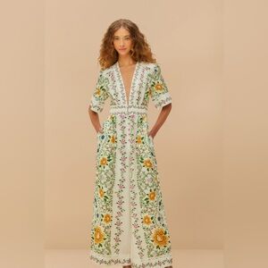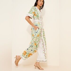 Farm Rio Anthropologie Folk Floral Linen Blend Short Sleeve Jumpsuit Medium