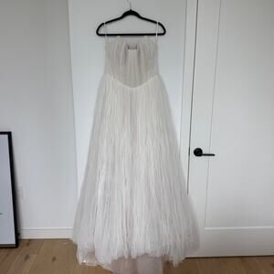 Watters BHLDN Magali Wedding Gown in Ivory. Women's Size 14. Features pleated tulle mesh overlay, strapless, sweatheart neck, bra pads, long floor length maxi skirt, skirt train, zipper closure. 100% polyester. Arm straps/accessories not sold with this. Never worn or altered. Brand new with tags. Retail $1800.